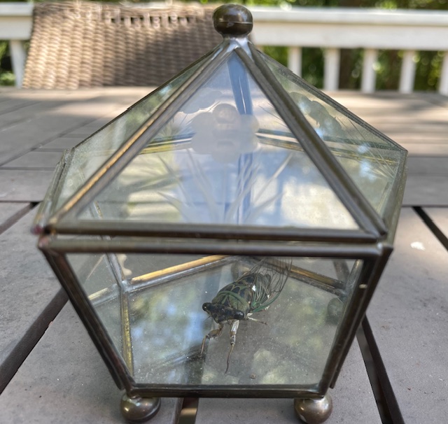 The cicada pictured above clung to our screen door. I was waiting for him/her to fly away but it turns out Charlie/Charlene had given up the ghost already. But now this little miracle in a glass display will serve as a reminder that whoever/whatever we are, we live to please God.